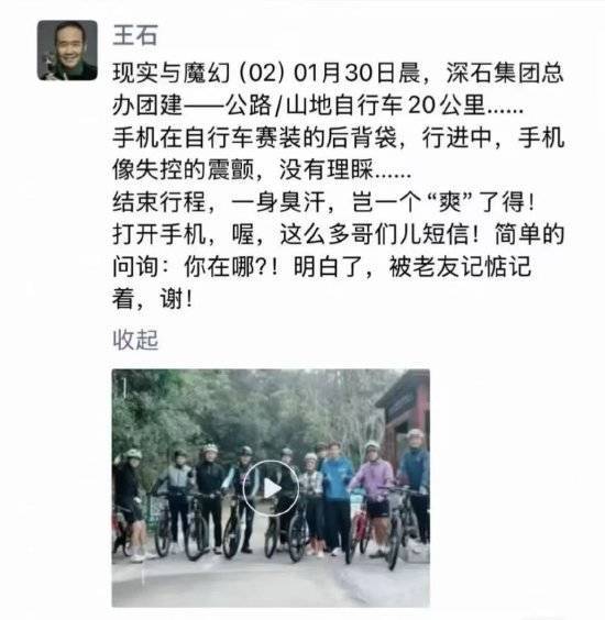 2月1日午间消息,近日,王石在朋友圈发文,疑似辟谣失联传闻。1月30日,王石视频号发布骑行视频。同日,王石朋友圈转发视频168股票配资,并发文称,“现实与魔幻(02)01月30日晨,深石集团总办团建——公路/山地自行车20公里⋯⋯手机在自行车赛装的后背袋,行进中,手机像失控的震颤,没有理睬⋯⋯结束行程,一身臭汗,岂一个爽了得!打开手机,喔,这么多哥们儿短信!简单的问询:你在哪?!明白了,被老友记惦记着,谢!”