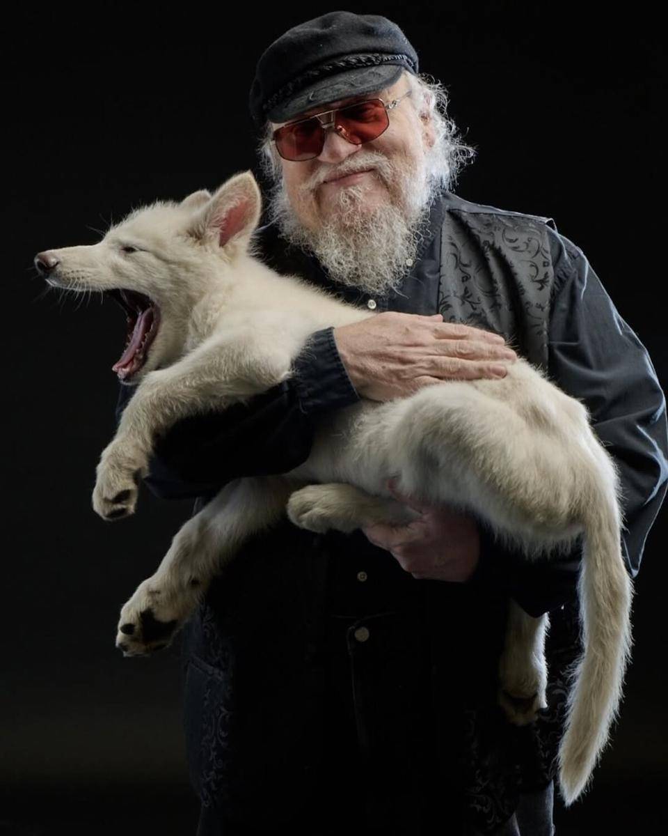 在接受采访时,马丁终于回应了这些质疑。他直言不讳地表示,自己早已疲于应对外界的指责——不管他做什么,哪怕只是开一家书店,或是像这样和恐狼幼崽拍张照,都会招来书迷的怒斥,逼着他“坐下好好写书”。