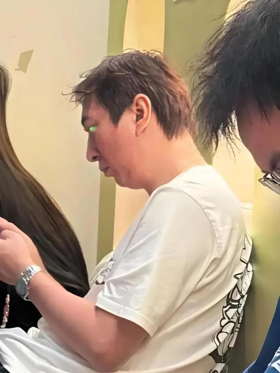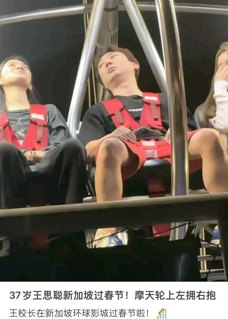 仰拍角度下,王思聪坐在那个高空弹弓项目上,虽然左右都有美女相伴,但一脸生无可恋的样子,头发稀疏,发际线也明显后移。